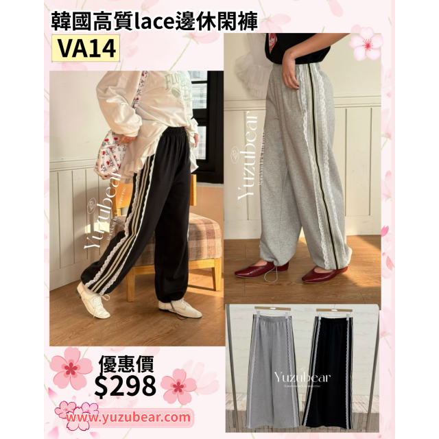 VA14 韓國高質lace邊休閑褲