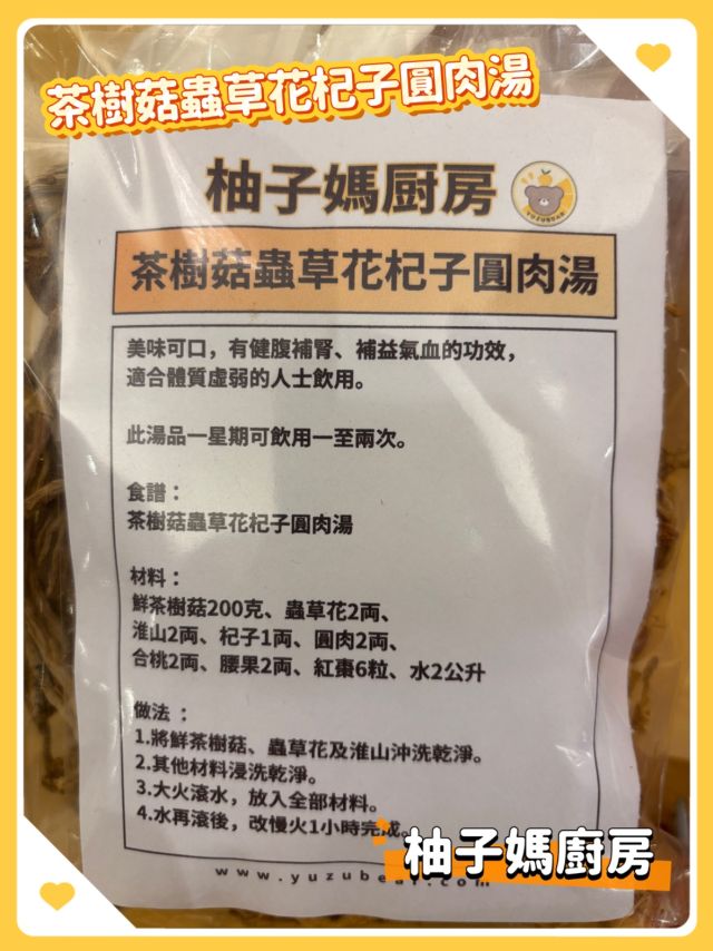 yk58 柚子媽厨房 - 茶樹菇蟲草花杞子圓肉湯