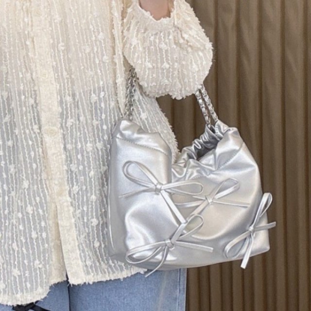 韓國女裝 - da151 超人氣蝴蝶結鎖鏈肩帶側孭袋
