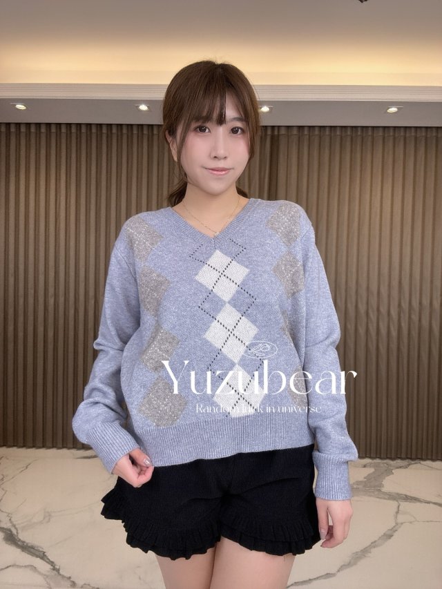 au123 韓國高質菱格花花刺綉圓領冷衫(羊毛65%)