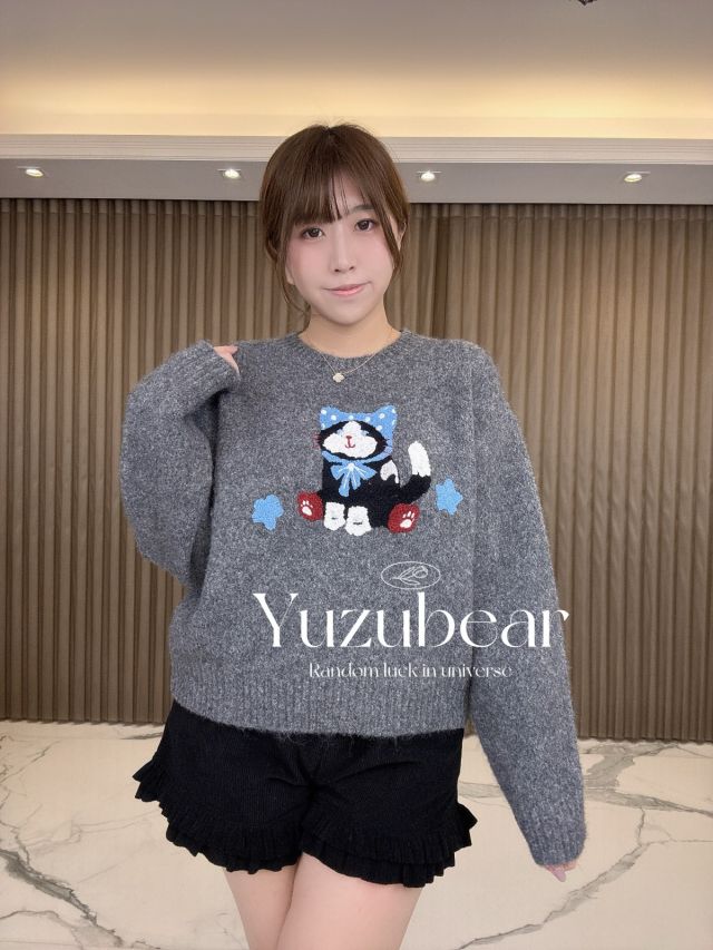 AU134 韓國高質帶頭巾羊羔毛貓貓冷衫(8%羊毛)