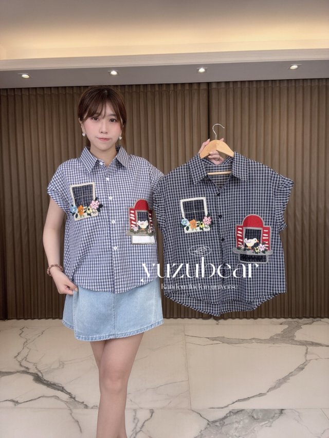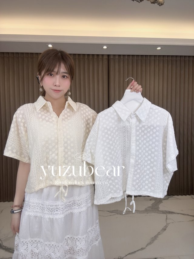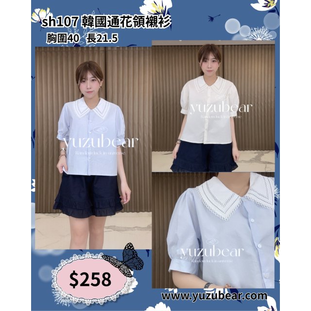 sh108 韓國小雛菊刺繡束腳襯衫🌼
