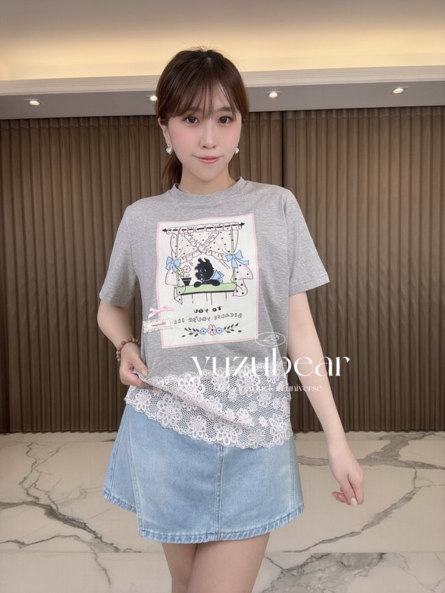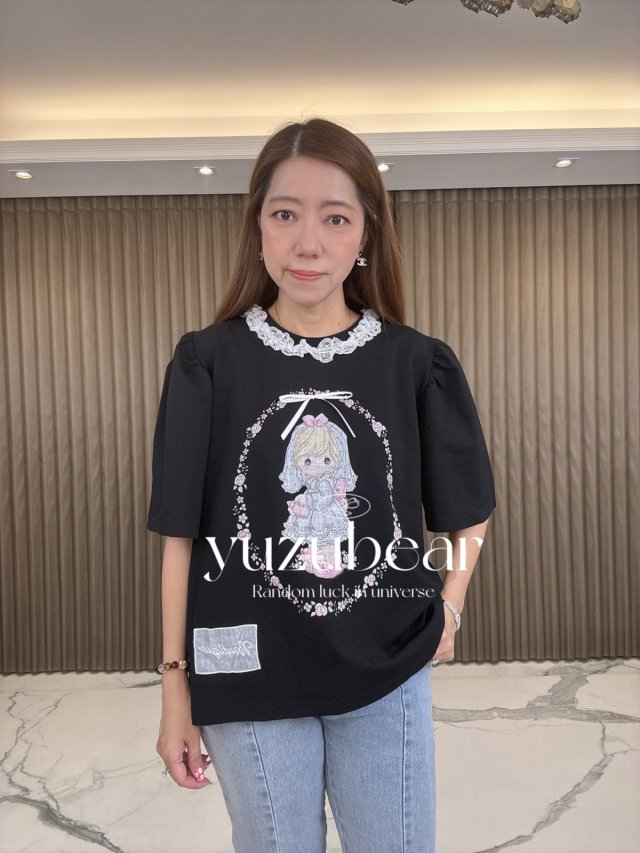 VA35 韓國復古花花Lace袖無袖全棉T-shirt