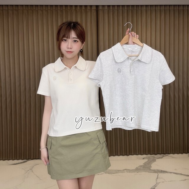 hk18 - 韓國法式刺綉logo翻領Polo衫