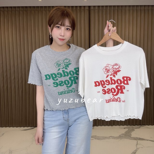 hk29 - 韓國玫瑰raffie邊T-shirt
