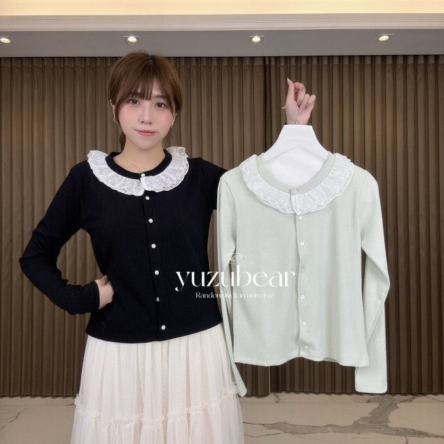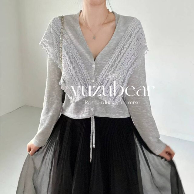 KE36 韓國Lace raffle邊針織彈性cardigan