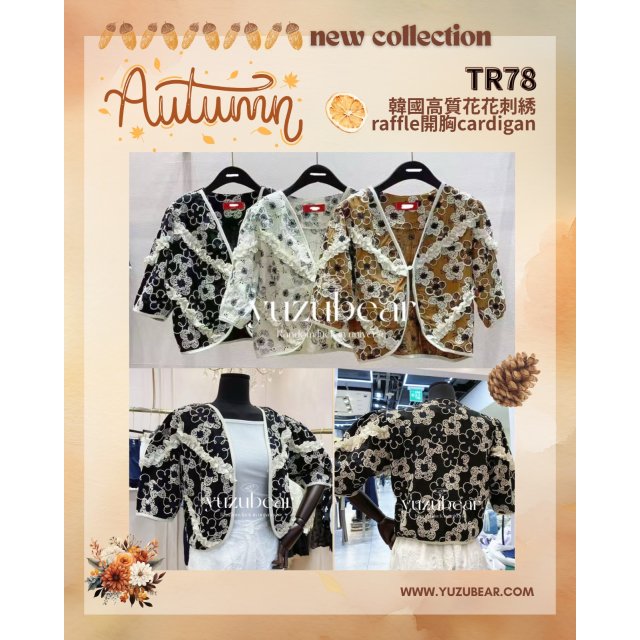 TR78 韓國高質花花刺綉raffle開胸cardigan