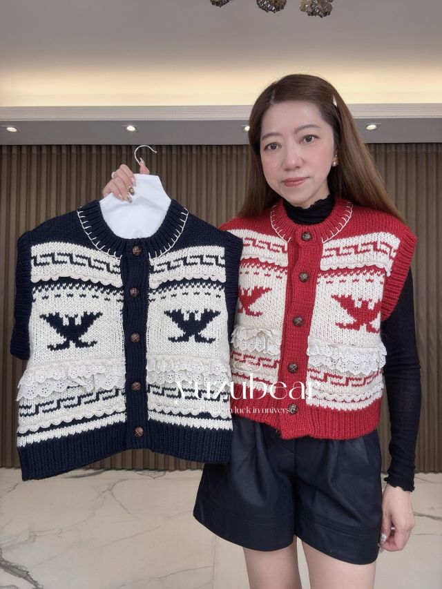AU72 韓國高質手工刺綉Lace冷衫開胸背心