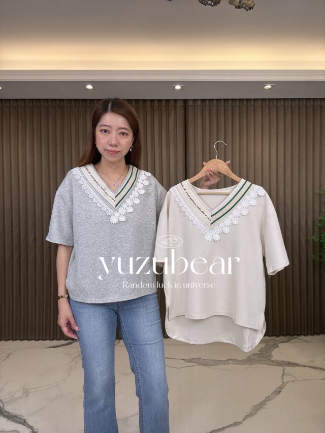 sh186 韓國lace拼V領blouse