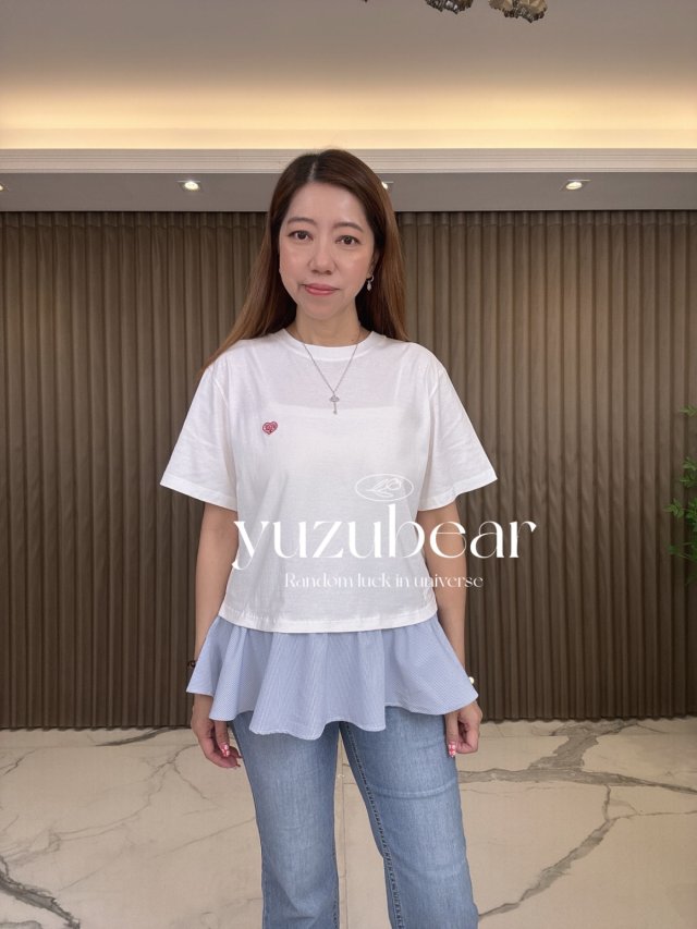 sh184 韓國間紋拼布心心娃娃T-shirt
