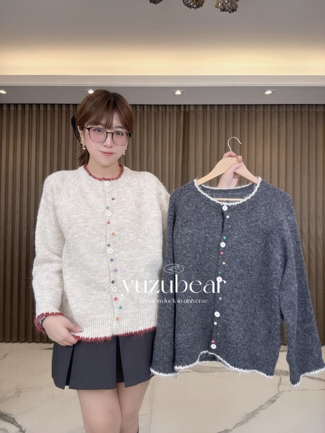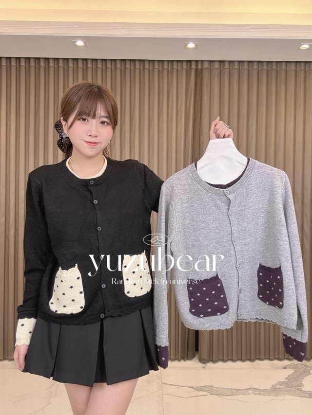 AU48 韓國軟熟口袋波點拼色冷衫cardigan
