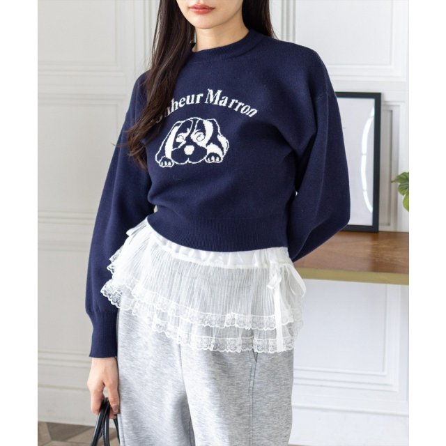 jc30 日本百搭lace喇叭袖彈性針織上衣