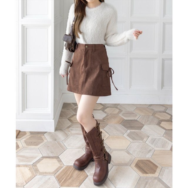 jc33 日本百搭蝴蝶結仿麂皮口袋短裙