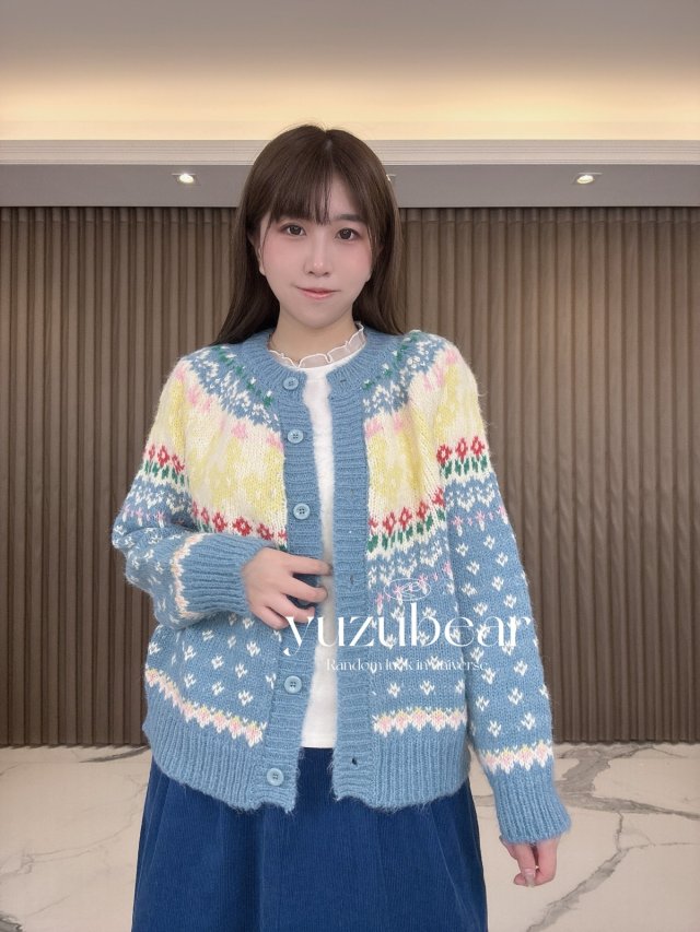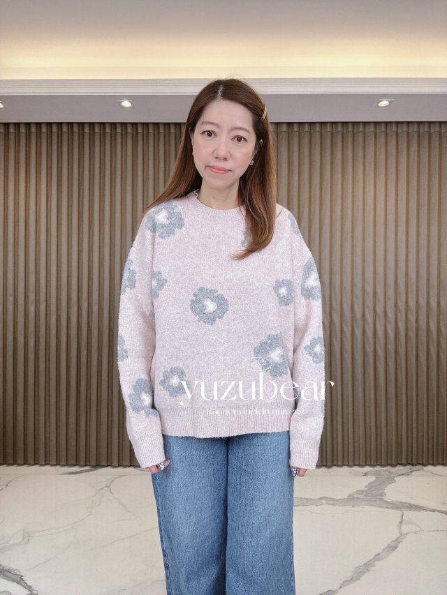 au116 韓國高質大花花圓領冷衫(羊毛6%)