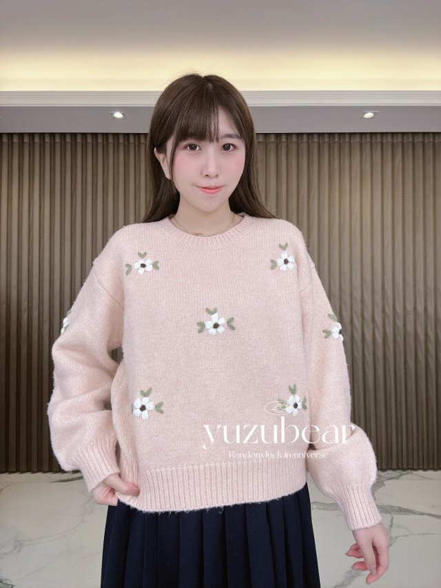 au115 韓國高質花花刺綉圓領冷衫(羊毛6%)