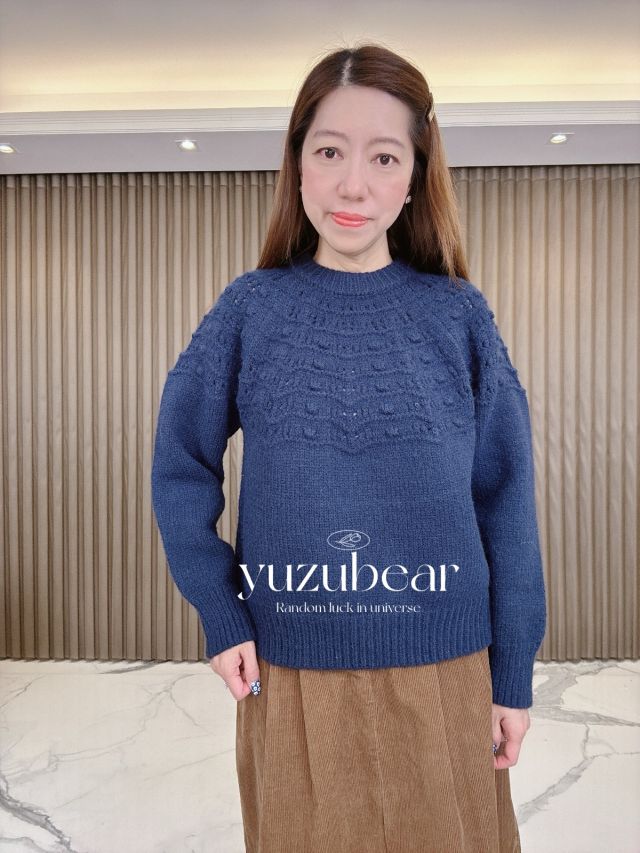 au123 韓國高質菱格花花刺綉圓領冷衫(羊毛65%)