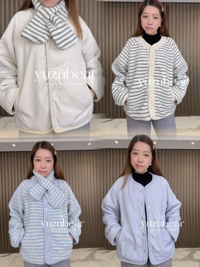 AU179 韓國高質羊羔毛間條燈芯絨包邊棉褸+羊羔毛圍巾套裝💖店主自留