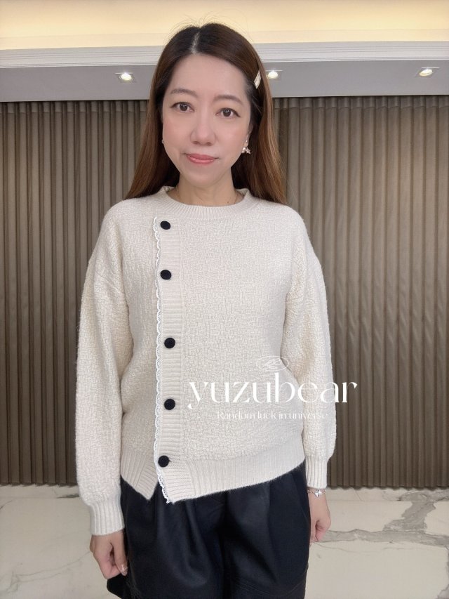 AU174 韓國高質lace邊側鈕皺皺紋冷衫