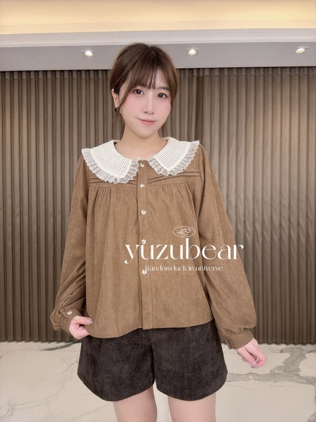 AU171 韓國高質冷編織lace邊領薄燈芯絨blouse