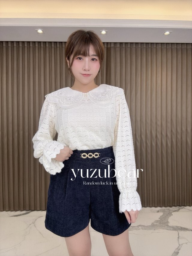 AU170 韓國lace雙層花邊領絨毛面blouse