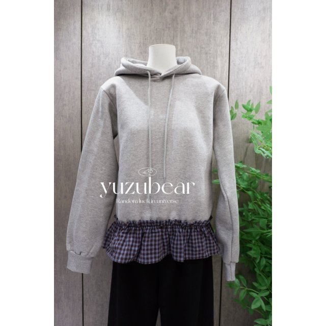 AU177 韓國高質格子raffle脚毛底連帽衛衣