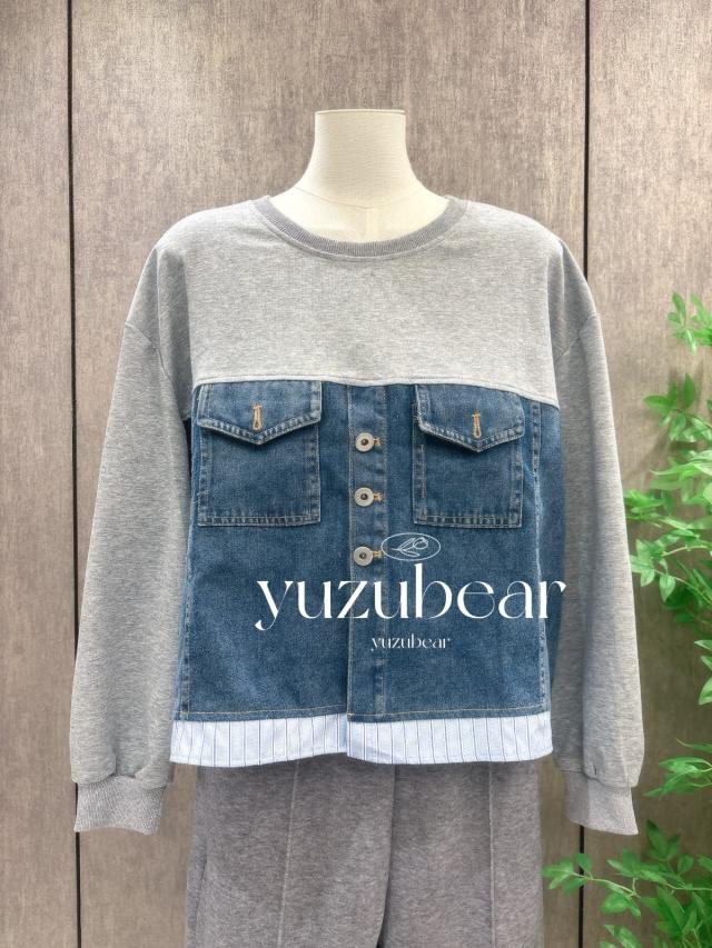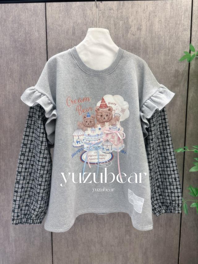 BQ13 韓國高質小熊蝴蝶結拼絲絨雛菊格子袖毛底衛衣【一口優惠價】
