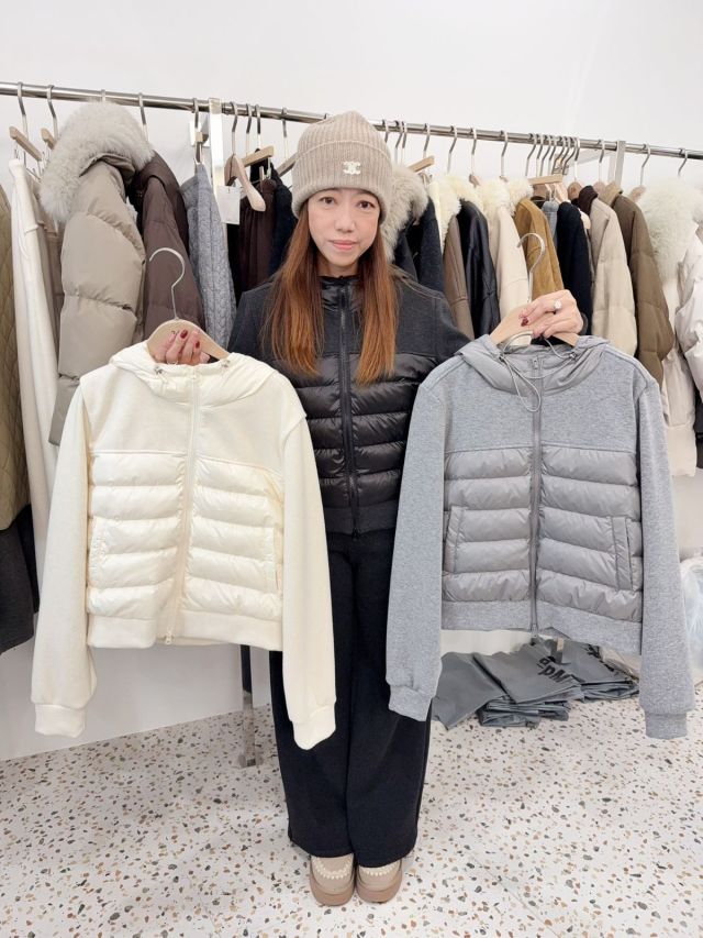 ad49 韓國高質鴨絨拼布連帽拉鏈外套+長褲