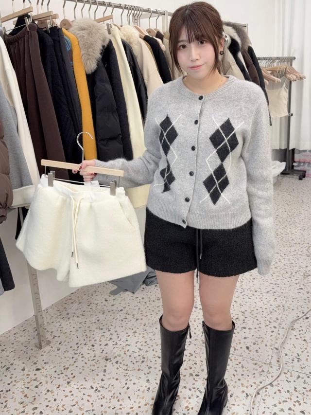 ad16 韓國高質菱格浣熊毛40% &羊毛30% 冷cardigan