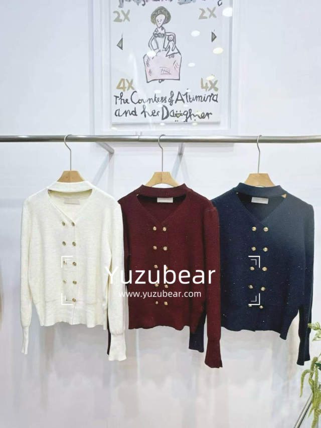 IA21 韓國高質織花蝴蝶V領冷衫(附圍巾)