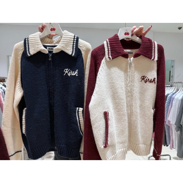 ks14 韓國潮牌kirsh🍒立體logo拼色領邊冷衫 11%羊毛