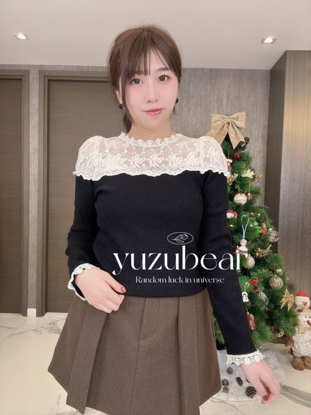 au216 韓國高質蝴蝶結刺綉lace拼布薄冷上衣(混羊毛)