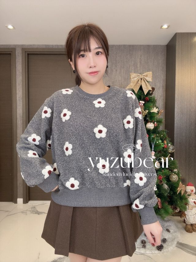 BQ13 韓國高質小熊蝴蝶結拼絲絨雛菊格子袖毛底衛衣【一口優惠價】