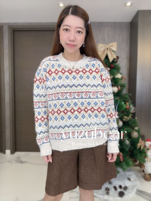au213 韓國高質拼色菱格花紋冷衫(混羊毛)