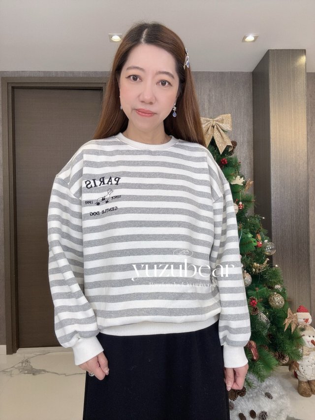 au212 韓國高質毛底間條狗仔刺綉衛衣