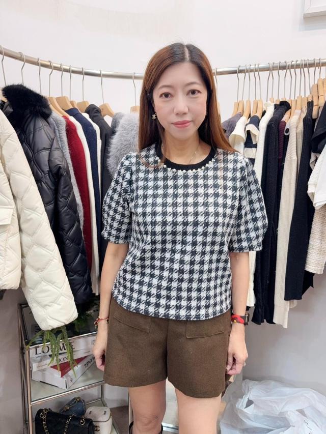 AS8 韓國高質千鳥格Blouse拼珍珠領 💖一口優惠價