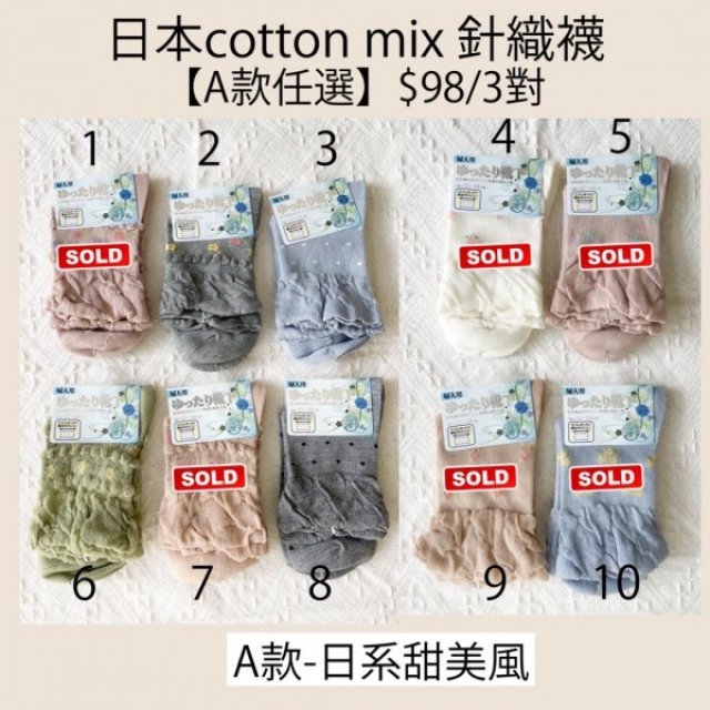 日本襪 - A款 日系甜美款式 【4件任選套裝】 *現貨