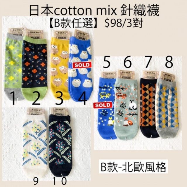 日本襪 - B款 北歐風格款 【4件任選套裝 】*現貨