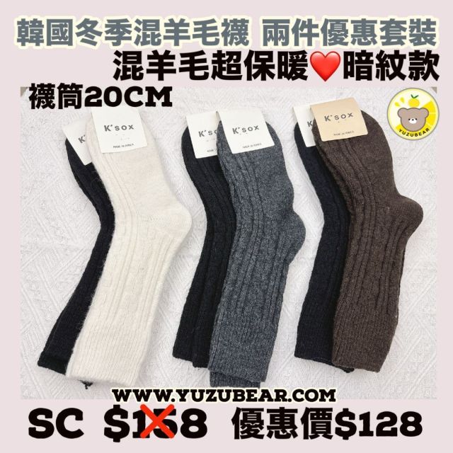 SC 韓國秋冬混羊毛襪 【兩件優惠套裝】(現貨)