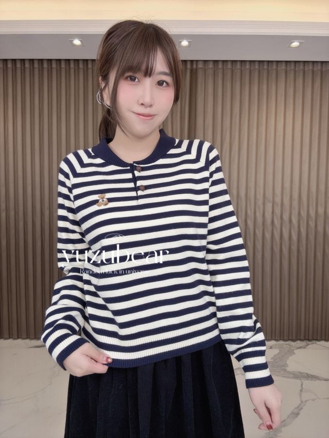 AU255 韓國小熊刺綉間條薄冷衫💖一口優惠價