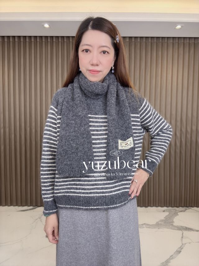 AU254 韓國高質間條冷衫+圍巾套裝💖一口優惠價💖