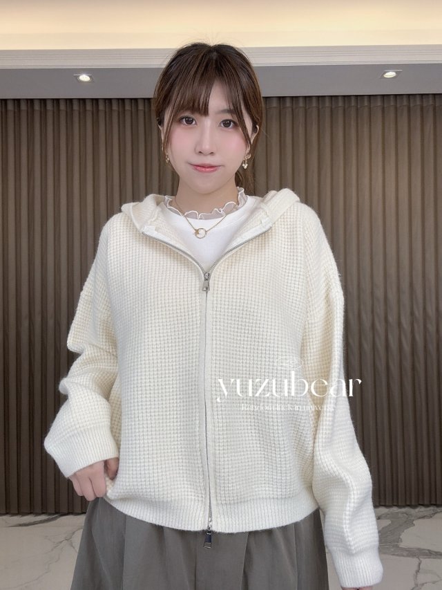 AU90 韓國高質暗格紋連帽冷衫拉鏈連帽外套💖(現貨)(白色裡面有污漬但表面完整)