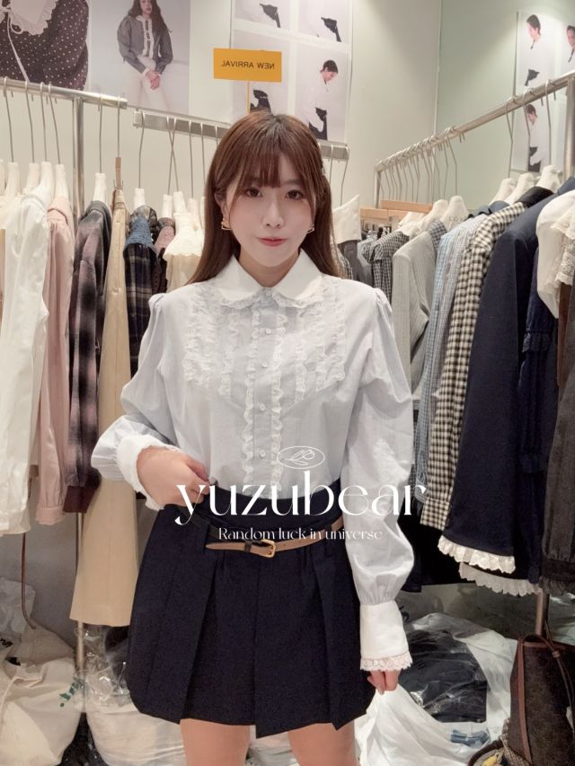 AG48 韓國高質暗紋格子花邊blouse(現貨)