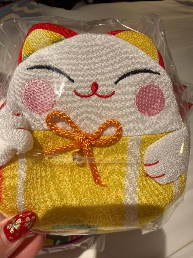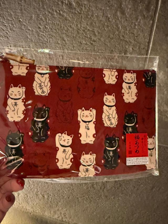 JP17 啡色招財貓和布索繩袋子Made in Japan 100%棉