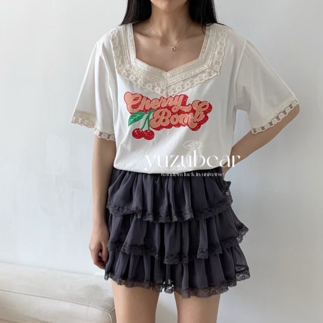 SH54 韓國車厘子Lace全棉T-shirt