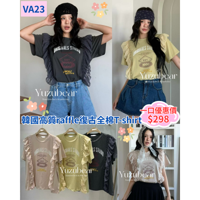 va23 韓國高質raffle復古全棉T-shirt