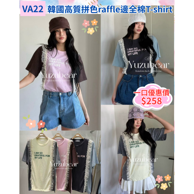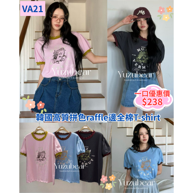 va22 韓國高質拼色raffle邊全棉T-shirt