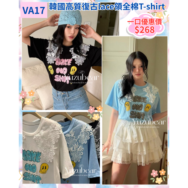 va17 韓國高質復古lace領全棉T-shirt