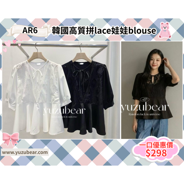 ar6 韓國高質拼lace娃娃blouse