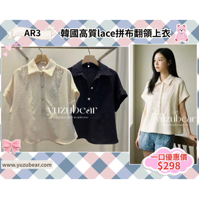 ar3 韓國高質lace拼布翻領上衣