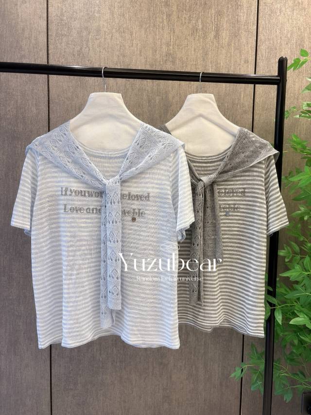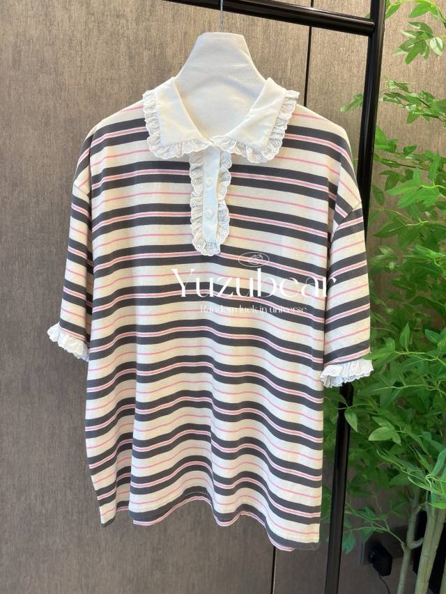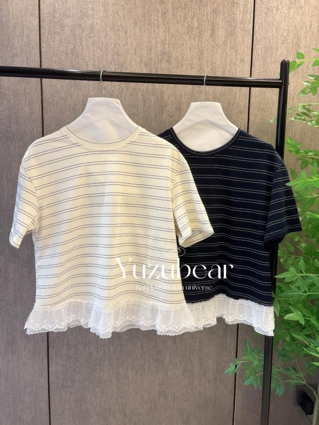 SS67 韓國高質間條lace脚T-shirt